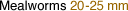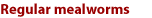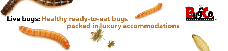 (Tenebrio molitor) Our Mealworms are raised in complete organic fashion. These little beetle larvae grow to be about one inch long and are great for herps, birds, and small animals. They keep for weeks at 38-45° Fahrenheit. Storing and care of mealworms For optimal results check your order for seasonal damage and chill all mealworms in the refrigerator to 45°. Bug Company mealworms that will be sold within a few days should be placed in our Bluebird Display Rack. Keep them in the fiber cans they came in - DO NOT USE PLASTIC CONTAINERS TO DISPLAY MEALWORMS AT ROOM TEMPERATURE! We suggest that you warm all mealworms out of the refrigerator at least once a week and allow them to eat. Feed pieces of apple or carrot for up to 24 hours and, if consumed, replace their bedding with a suitable product like red wheat bran. Return fed mealworms to cold storage or to your room temperature display rack as needed. Call us at 800-451-2576 with any questions you have. |