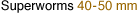 For optimal results, check your order for seasonal damage and store all Superworms at room temperature (70-80°) in our Bluebird Display Rack. Keep them in the fiber cans they came in. Superworms will keep much better in our insect-friendly fiber cans. As a bonus, they also cannot chew their way out of our fiber cans the way they can out of traditional plastic containers. | |||